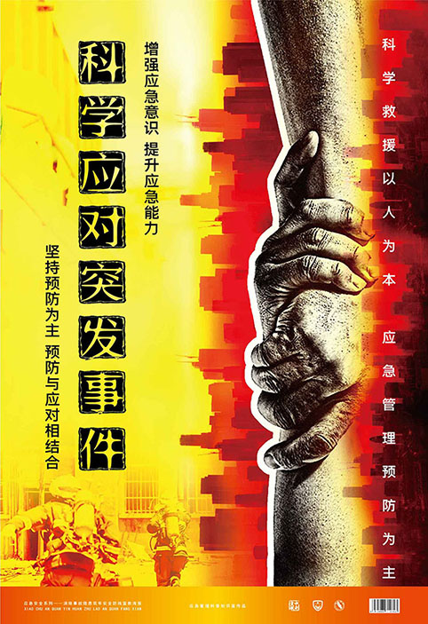 本套招贴从国家政策、应急管理、安全发展、消防安全、和谐社会等多个角度勾画出“以人为本 生命至上”的宏伟画面,紧扣2020 年全国安全生产月主题,画面简洁大方,富有冲击力,既烘托气氛又发人深思。适用于各级政府和企业活动期间进行宣传展示。