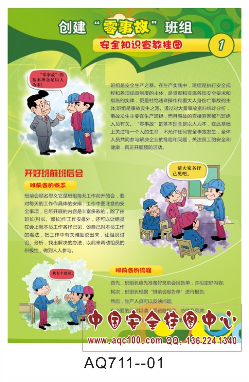 AQ711-01创建零事故班组安全知识宣传挂图 开好班前班后会