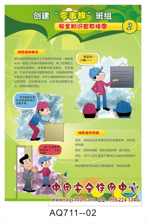 AQ711-02创建零事故班组安全知识宣传挂图 班后会的概念