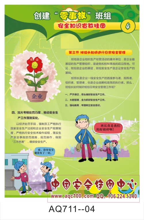 AQ711-04创建零事故班组安全知识宣传挂图 班组长如何进行日常安全管理