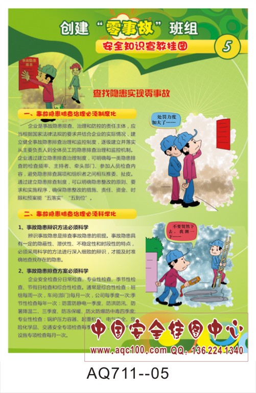 AQ711-05创建零事故班组安全知识宣传挂图 查找隐患实现零事故