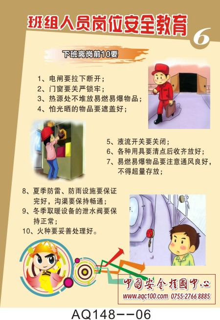 AQ148--班组人员岗位安全教育挂图-6张