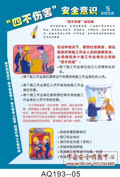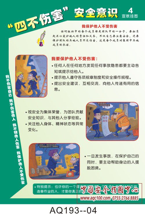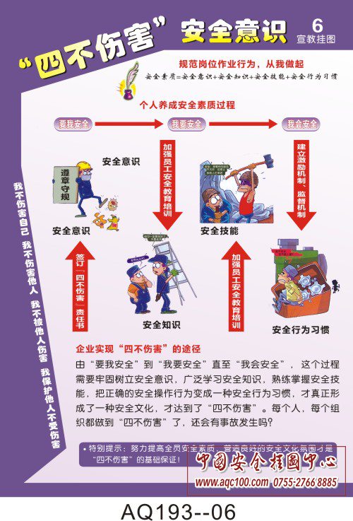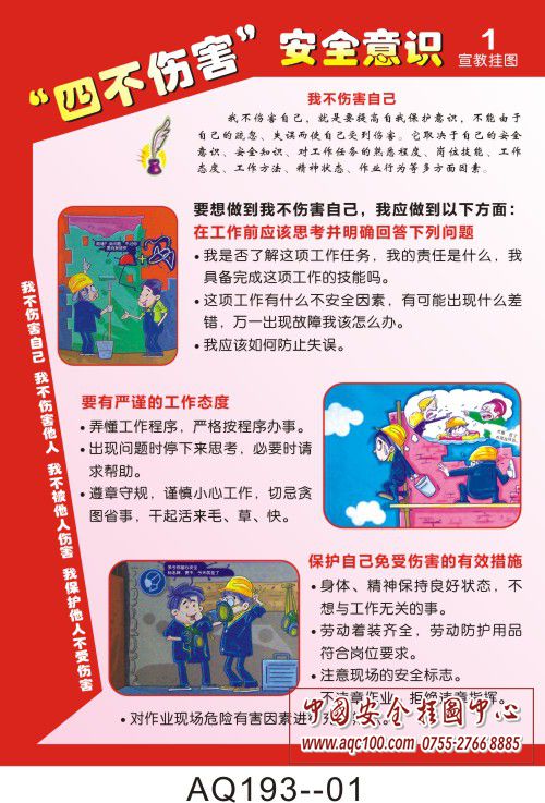 AQ193--作业现场四不伤害安全意识挂图-6张