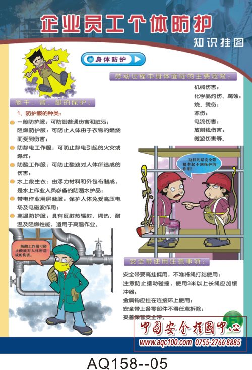 本套挂图分门别类的对常用安全防护用品和劳保用品详细地进行了介绍,针对目前基层普遍存在的劳保用品使用中最容易发生问题的方面有针对性地进行了讲解,力争使职工们在生产活动中通过劳保用品的正确使用而得到最大限度的保护,充分发挥劳保用品的作用,从而为企业和社会能够创造最大的经济和社会效益。本产品同时也是劳保用品生产企业普及劳保知识的首选素材。