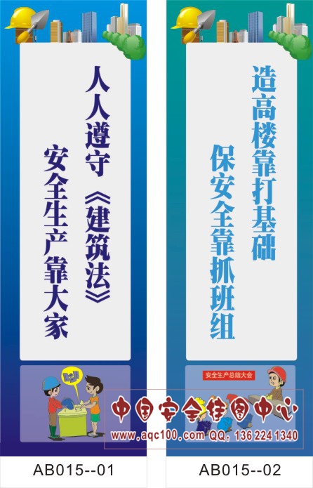 AB015-08建筑施工安全作业宣传标语、安全帽是我们的呵护神 安全带是我们的生命线