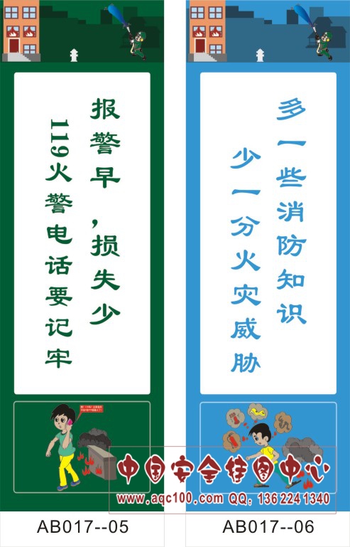 AB017-05消防安全宣传标语、报警早,损失少,119火警电话要记牢