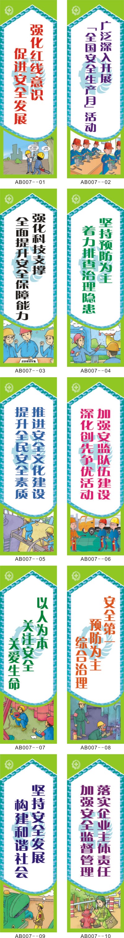 AB007-01-2014年安全生产月主题宣传标语 强化红线意识 促进安全发展 AB007-02-2014年安全生产月主题宣传标语 广泛深入开展 [全国安全生产月]活动 AB007-03-2014年安全生产月主题宣传标语 强化科技支撑 全面提升安全保障能力 AB007-04-2014年安全生产月主题宣传标语 坚持预防为主 着力排查自理隐患 AB007-05-2014年安全生产月主题宣传标语 推进安全文化建设 提升全民安全素质