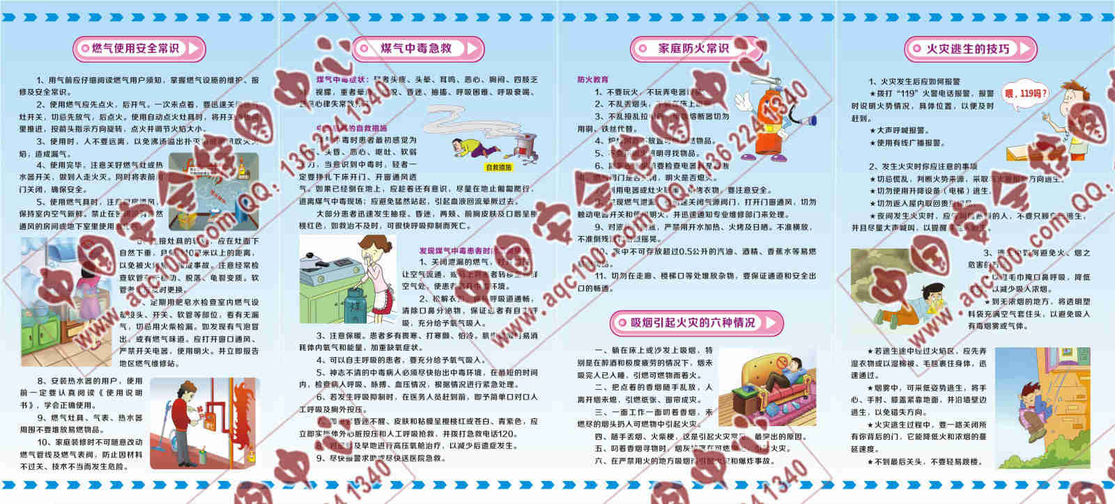 安全折页系列包含市民和企业员工应知应会的基本安全常识。图文结合,视觉冲击力强;印刷精美,品质高端;卡通插画,图文并茂,供企业对员工安全教育、安全生产月期间发放,适用于广泛的受众人群,是政府、企业、社区安全生产宣传教育的最佳安全宣传资料。