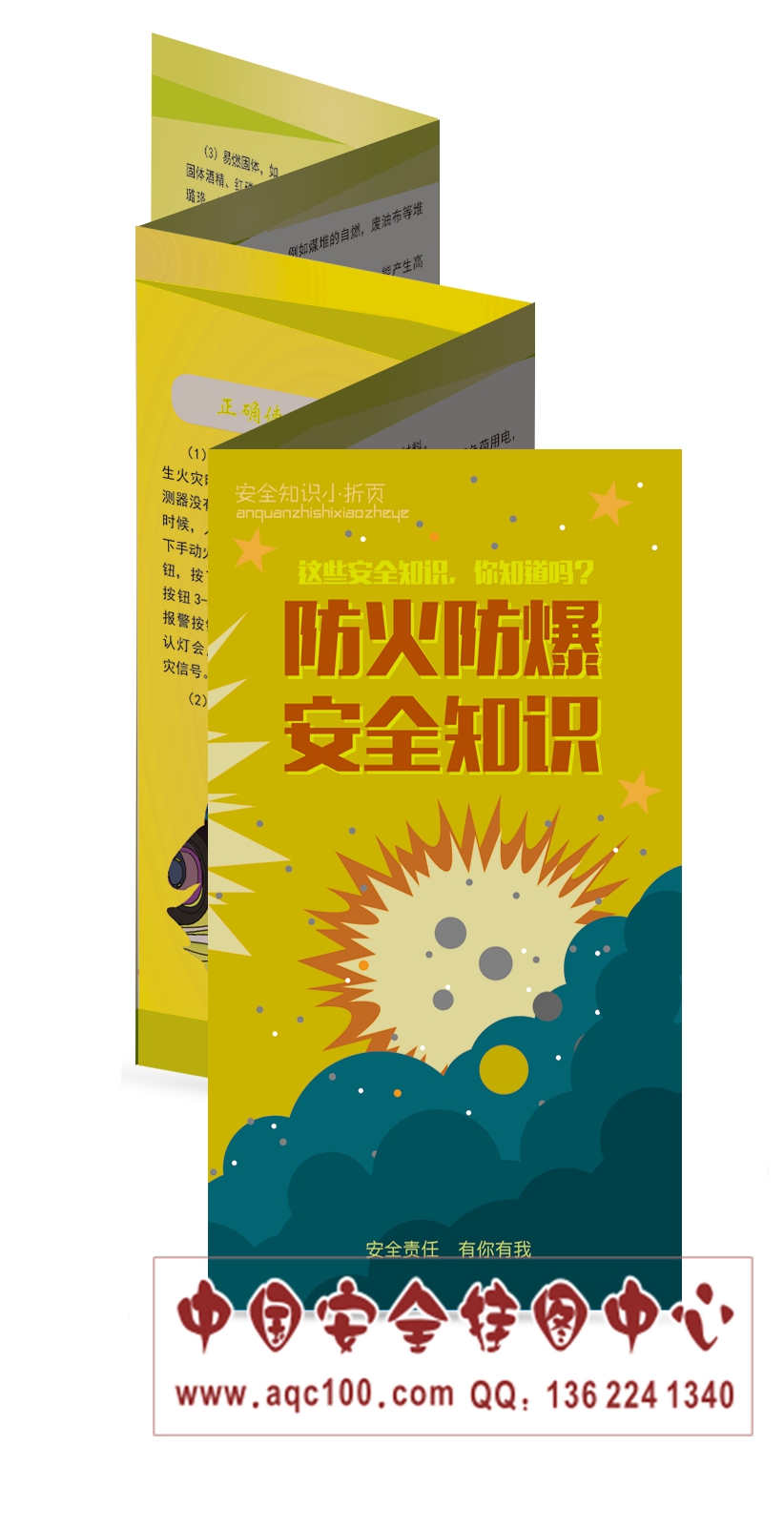 产品简介: 为方便“安全生产月”宣传活动,我们编制了系列安全生产折页,内容生动活泼,实用性强,内容涵盖面广,为您普及日常生产与生活中的安全知识。本套折页与挂图形式结合,使安全教育更加到位,弥补安全宣教挂图和图书教材的不足,形式新颖,喜闻乐见,便于安全宣教活动发放教育,内容新,符合国家最新法律法规和标准,具有可读性,从业人员一看便懂一看便会,宣教效果立竿见影。