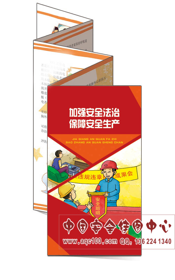 起 订 量:50份起订 产品价格:2.5元/份 折 页 数:5折页 规 格:525*190mm 产品材质:铜版纸四色双面印刷 产品简介:2015安全月主题活动知识折页系列包含市民和企业员工应知应会的基本安全常识。图文结合,视觉冲击力强;印刷精美,品质高端;卡通插画,图文并茂,供企业对员工安全教育、安全生产月期间发放,适用于广泛的受众人群,是政府、企业、社区安全生产宣传教育的最佳安全宣传资料。