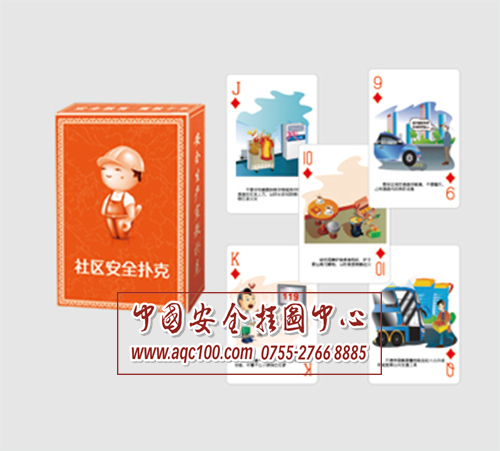 社区安全扑克牌,乐在安全在。本公司推出的安全扑克系列产品,将安全知识与娱乐完美融合,寓育于乐,使职工在消遣娱乐时随时受到教育,达到宣传教育的目的。