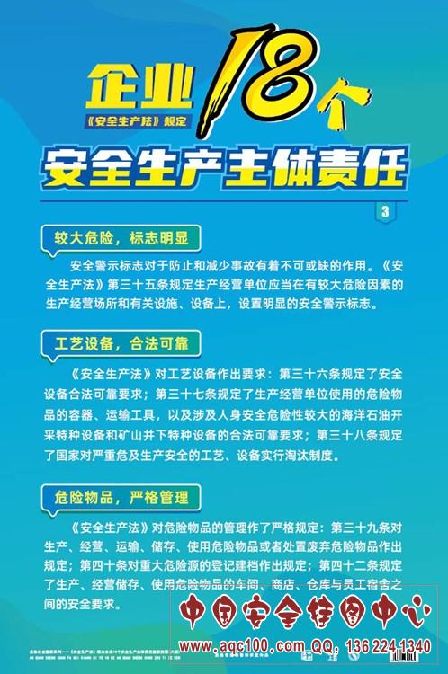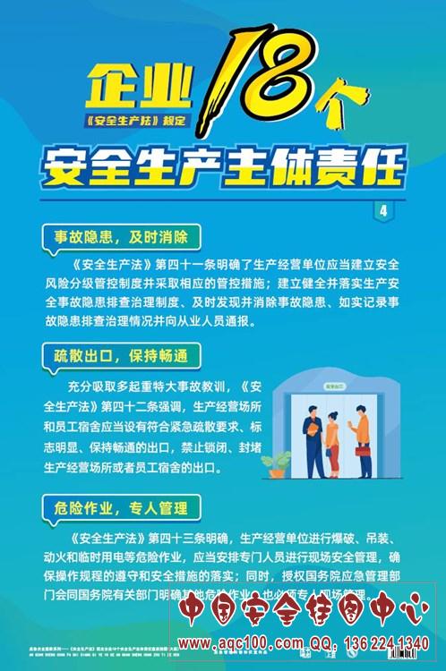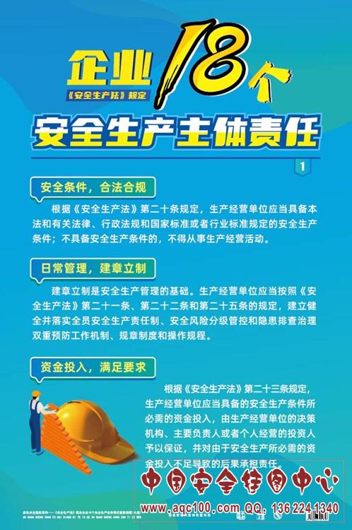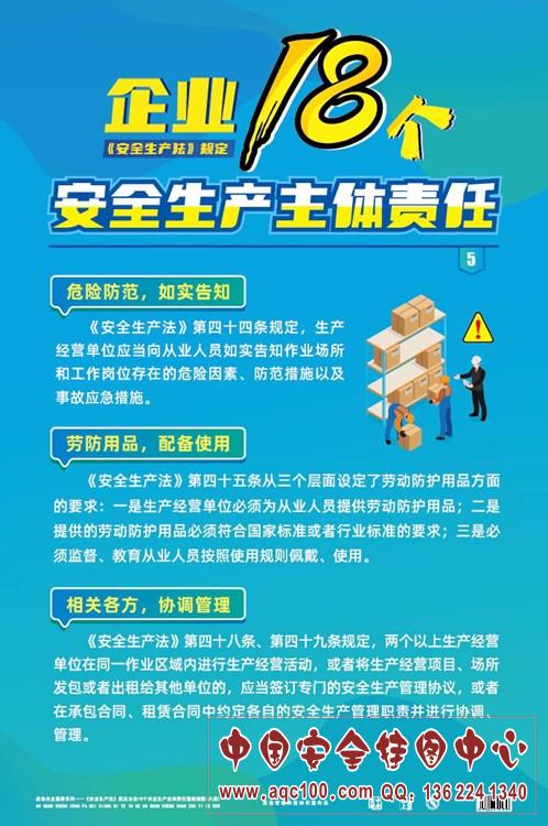 《安全生产法》规定企业18个安全生产主体责任宣教挂图-AQ7085