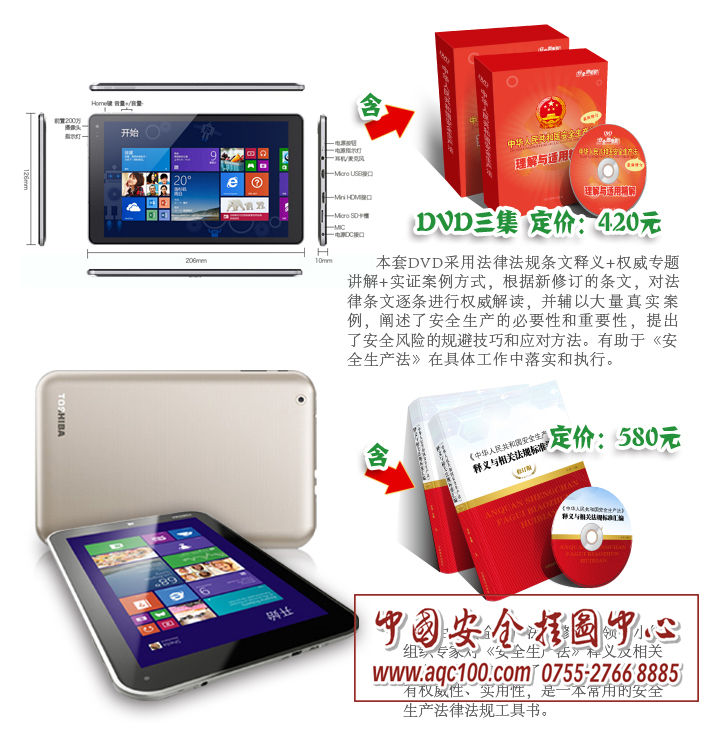 8寸平板一机多用,既能观看学习价值420元的“《安全生产法》权威解读与理解适用”3集宣传片,又能时刻查阅580元的“《安全生产法》释义与相关法规标准汇编”电子书,是安全生产法学习宣贯的好帮手,您值得选择。
