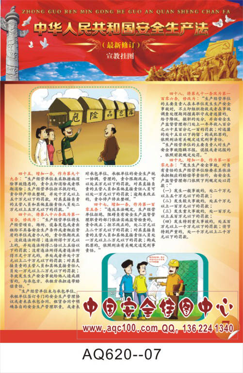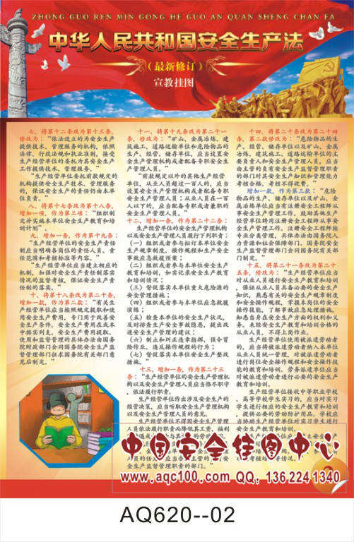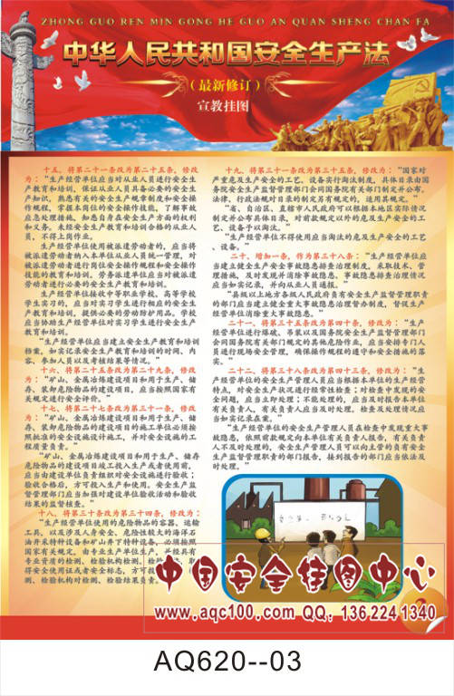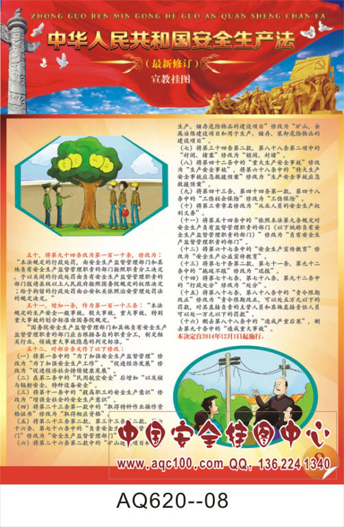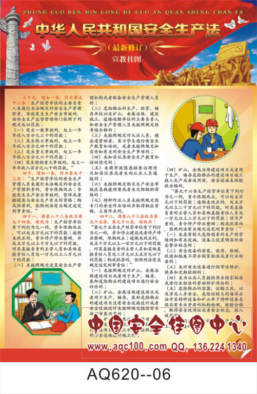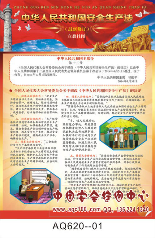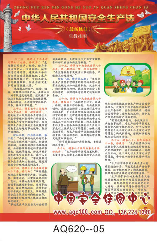 AQ620--最新修订安全生产法(红色版)宣传挂图-8张 铜版纸印刷 表面覆膜