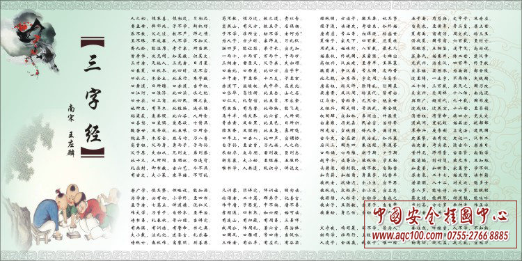 《三字经》、《百家姓》,《千字文》与《千家诗》合称“三百千”,为古代启蒙教育的著名教材,自南宋以来,已有七百多年的历史。《三字经》是中华民族珍贵的文化遗产,它短小精悍、朗朗上口,千百年来,家喻户晓。其独特的思想价值和文化魅力为世人所公认,被历代中国人奉为经典并不断流传。它的核心思想包括了“仁,义,诚,敬,孝。”