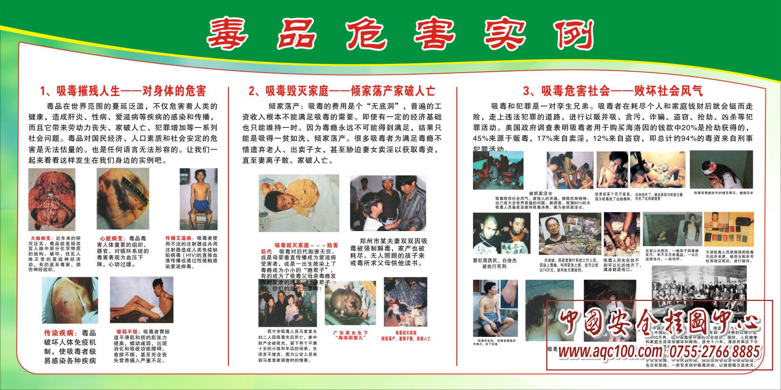 (3)毒品活动扰乱社会治安:毒品活动加剧诱发了各种违法犯罪活动,扰乱了社会治安,给社会安定带来巨大威胁。无论用什么方式吸毒,对人体的身体都会造成极大的损害。