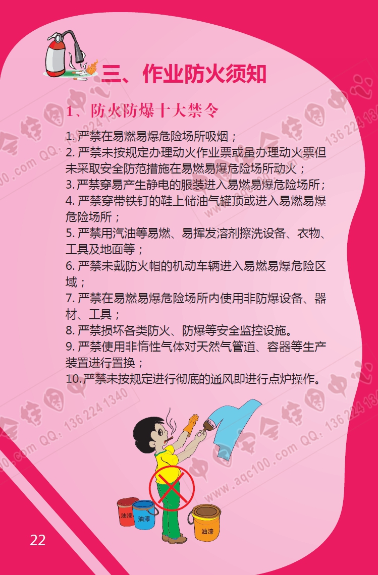 消防安全知识小手册--百科小手册/安全百科书(口袋装)根据今年“安全生产月”活动的主题及任务要求,将企业员工在实际工作中需要注意的安全事项具体化、实用化,有助于形成“时时讲安全,处处是课堂”的浓厚氛围,帮助迅速提高全员安全知识水平。本套百科形式新颖,图文结合,画面精美,携带方便,是为企事业单位及员工树立安全意识、保障安全发展提供一种有效的文化工具。