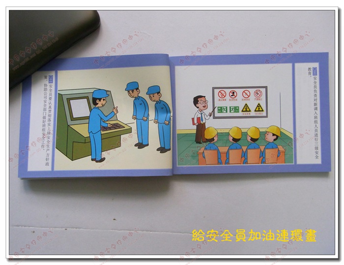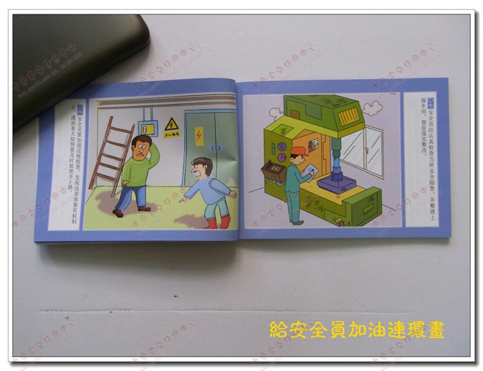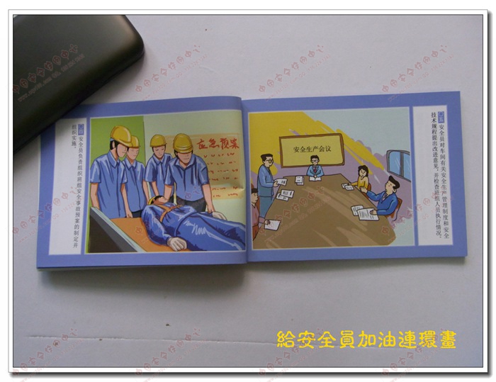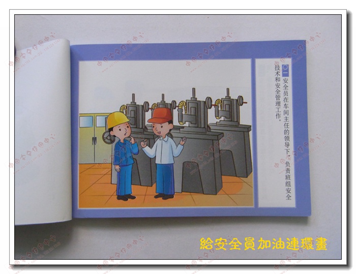 本公司推出安全生产连环画系列共十套,内容围绕消防、交通、用电、居民、班组、员工安全等方面,介绍了在生产工作及生活中应该注意的各项安全事项。以漫画为主,配以简短明了的文字,卡片形式方便携带,是普及安全知识的上佳材料,也是各种活动中作为安全奖品的良好选择。