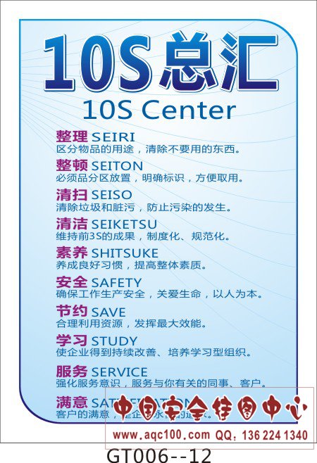 GT006-12--10S总汇 整理、整顿、清扫、清洁、素养、安全、节约、学习、服务