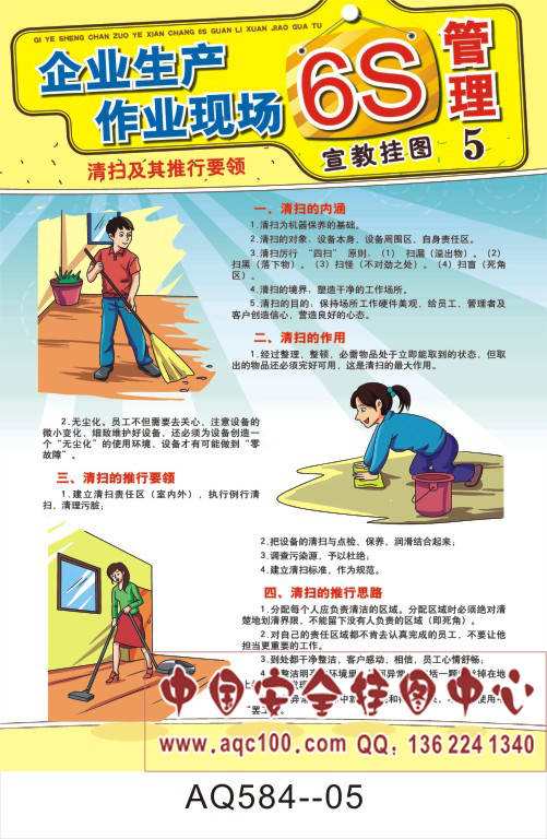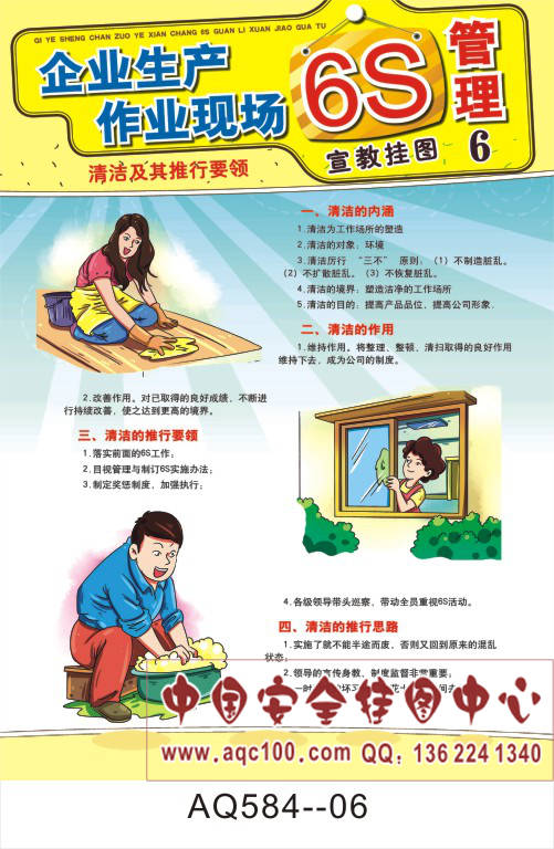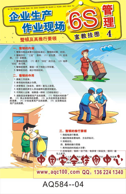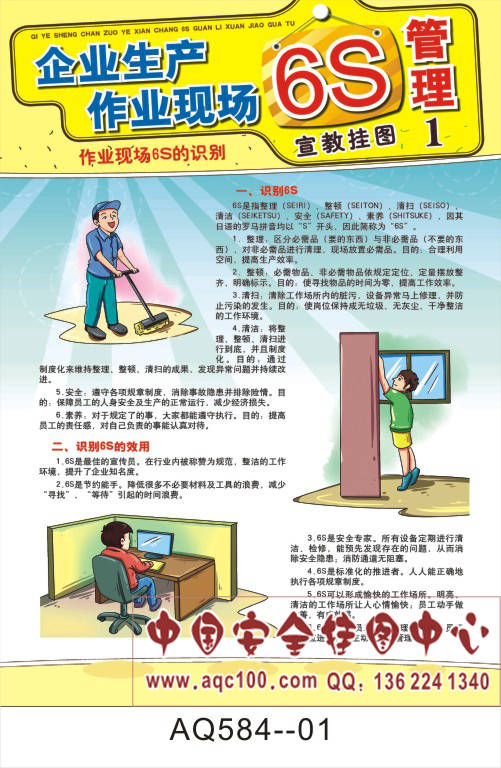AQ584--企业生产作业现场6S管理宣传挂图-8张