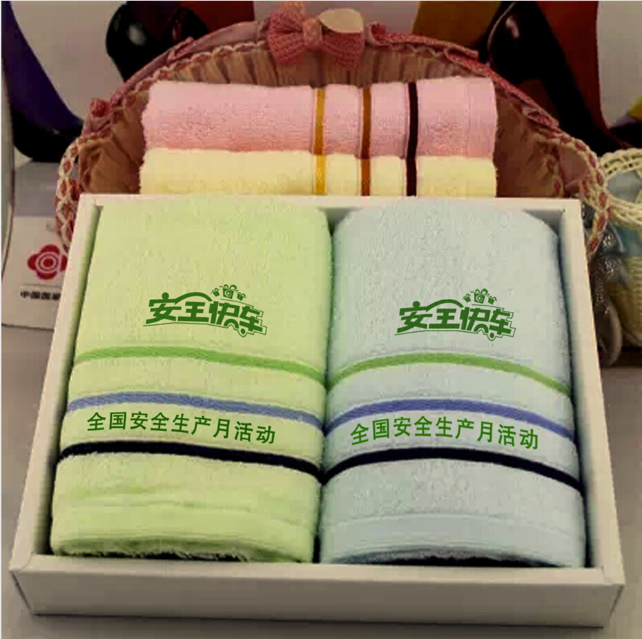 毛巾安全月宣教礼品礼盒包装为2条装50条起订套装毛巾2条浴巾1条